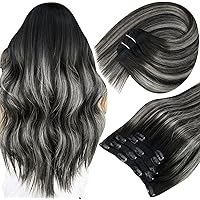 Amazon Com Tressmatch 20 21 Clip In Remy Human Hair Extensions Thick To Ends Off Black Color 1b 9 Pieces Pcs Full Head Set Set Weight 4 2oz 125g Long Hair Extensions Clip In Human