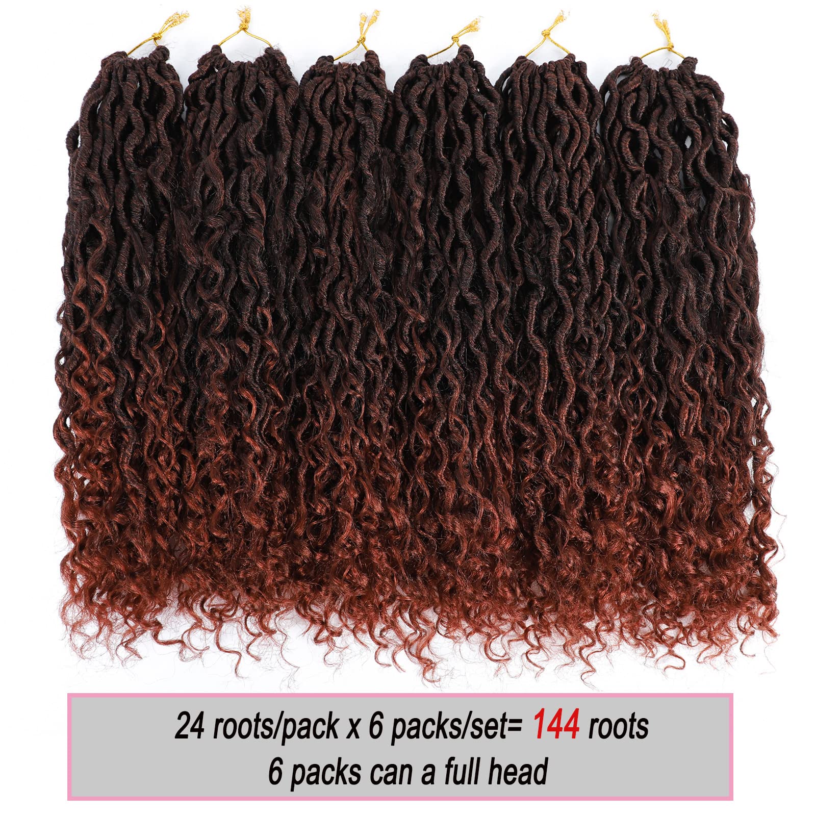 New Goddess Locs Crochet Hair 6 Packs 18 Inch Copper Red River Faux Locs Crochet Hair Bohemia Locs Crochet Hair With Curly Ends In Middle And Ends Boho Faux Locs Synthetic Hair