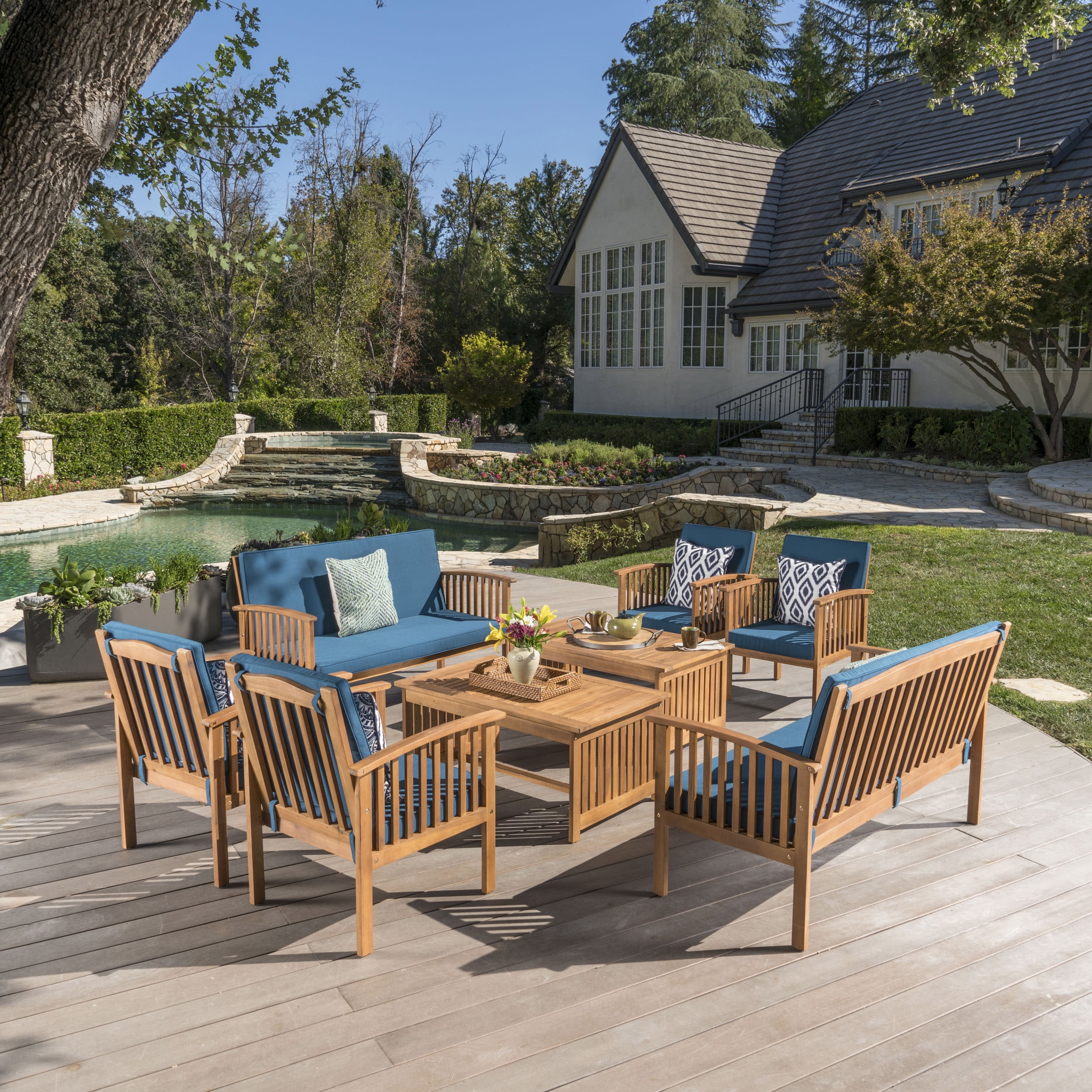 Jenny Outdoor 8 Piece Acacia Wood Sofa Set With Cushions Brown Teal Walmart Com